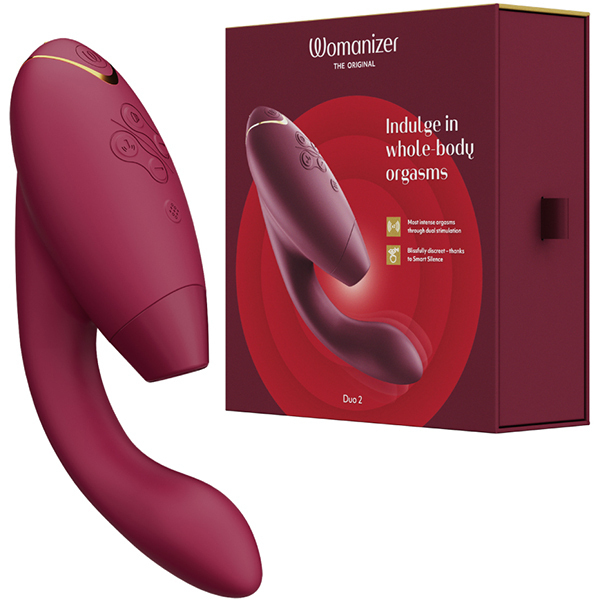 <吸引・震動/USB充電式>挿入と吸引が同時にできる大人気のウーマナイザーDUOがDUO2に進化!吸引振動の強弱段階は12段階から14段階へパワーアップ。さらにクラシック2の限定機能だった「アフターグロー機能」を搭載。オーガズムの際、電源ボタンを短く押すことで吸引も挿入部の振動も最弱の振動となり、余韻を楽しむことができます。●カラー:ボルドー※こちらの商品は受注発注商品の為、ご注文から発送までに3、4営業日掛かる場合が御座います。