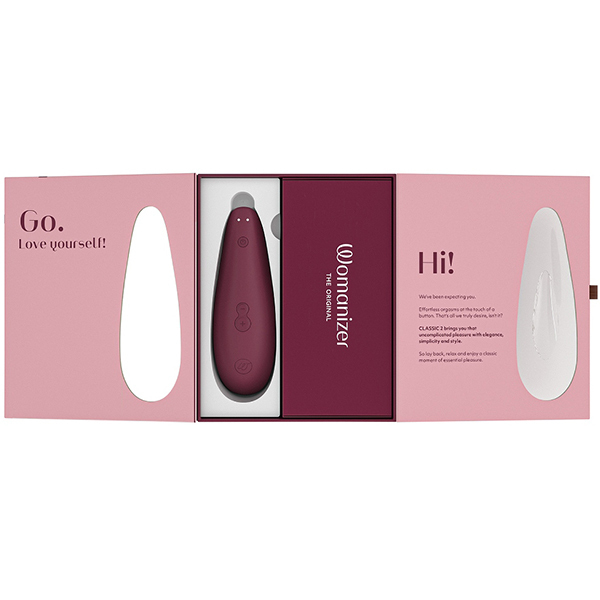 世界初の吸引式バイブとして人気のウーマナイザーから入門用にぴったりな商品が登場しました!「ウーマナイザー クラシック2 (ボルドー)」。プレミアムほどの高性能さは要らない!でも高級感は失いたくない。そんな人に最適な商品です♪前作では8段階だった振動機能が10段階へ!吸引部は柔らかな肌触りのシリコンで、オーガズムに達した際に電源ボタンを押せば最弱の吸引力になる新機能「アフタグローフューチャー機能」を搭載。最弱の振動レベルに切り替わることで「いきなりブツッ」と切れることなく最後まで優しい余韻が楽しめます♪使い方はシンプルでキャップをクリトリスにかぶせるように当てるだけ。エロティックに吸われキスされているような、あなたの一番敏感で繊細なところへ複雑な快感と刺激を与えてくれます。※こちらの商品は受注発注商品の為、ご注文から発送までに3、4営業日掛かる場合が御座います。 |