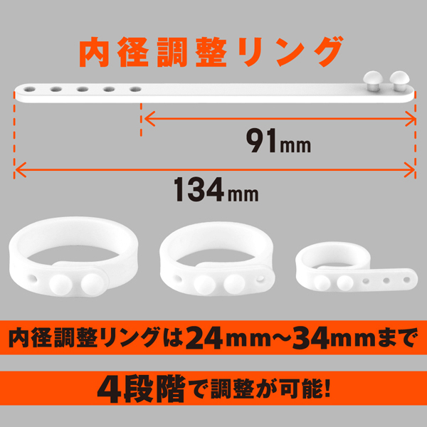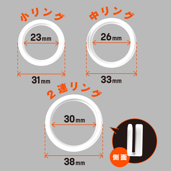 サラスベ質感でベタつき無し!伸縮性が高くて着けやすいソフトタイプのペニス用リング。皮戻りや持続力アップなどマルチに活躍!内径23mmの小、内径26mmの中、内径30mmの2連リングに加え、好きなサイズに調整できる内径調整リングの4個セットになっているので、個人の身体に合わせてお使いいただけます。素材は柔らかな高品質シリコンを採用◎ |