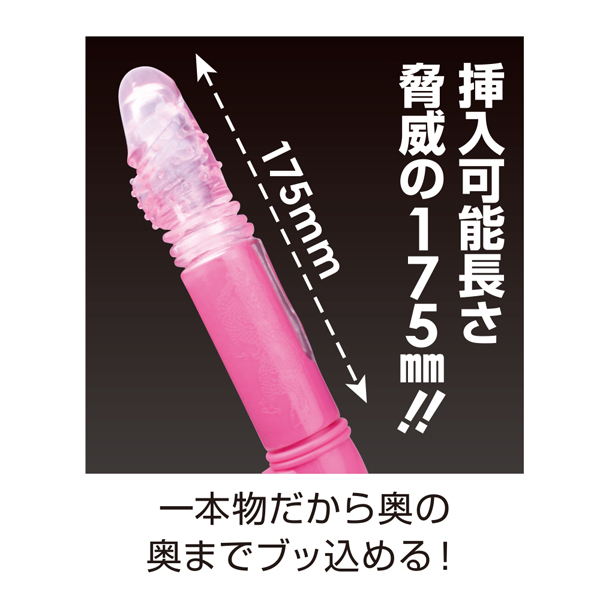 挿入可能な長さは約17.5cm!奥の奥まで突き上げる電池式ストレートバイブ(ピンク)。6Vの強力トルクで激しくピストン!奥を突くと同時にヘッド部分で振動刺激する♪他にもスイングアクション、36種類もの振動パターンを搭載。静音設計&生活防水の高性能バイブです。 |