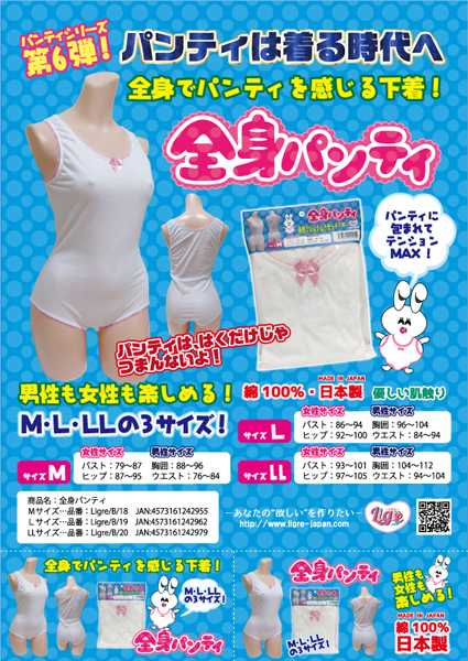 ついにパンティを着る時代が到来!優しい肌触りの綿生地が全身を包み込む男女兼用の日本製レオタード型パンティ。股の部分には本格的なクロッチ付!リグレジャパンの匂いグッズ「聖の聖臭」シリーズと組み合わせてみても◎ |