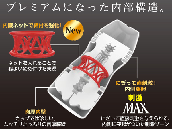 肉厚な入口がリアルな挿入感を与える「ユイラシコルプレミアム(ムーンライト)」。前モデルに比べフィルムの耐久性アップ!破れにくく安心して強く握りしめられるようになりました♪また、内部にはネットリングを内蔵し締め付けを強化!そのまま使っても良いですが、外側から握って圧力をかけることで内側に設置された突起の刺激をよりお楽しみいただけます。ローション付 |