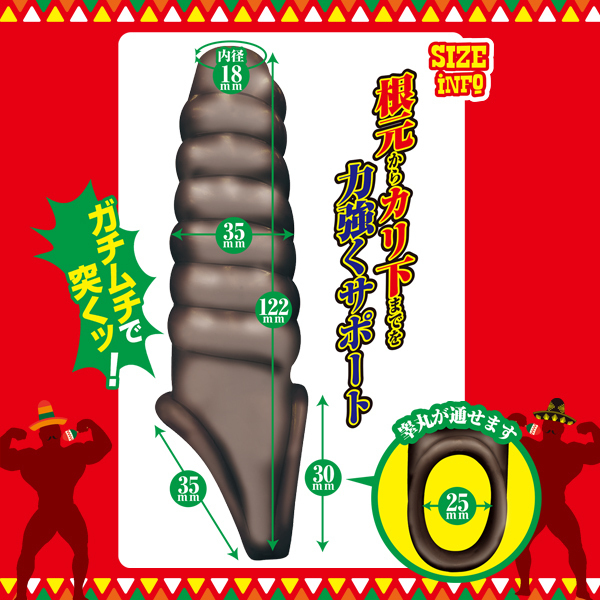 ◆商品仕様:パッケージ:16.5×5.0×5.0cm 本体:全長12.2cm・最大径3.5cm・亀頭露出穴内径1.8cm・睾丸装着穴内径2.5cm