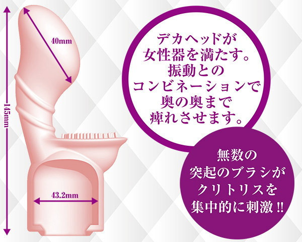 ストレスフリーな使用感♪ズレにくさを考慮した電マ用の2か所責めアタッチメント。●ミドルサイズ電マに装着可能●ホールド力高めなフィット感●ズレにくく快適プレイを補助●オルガスター型大きめヘッド●膣内をたっぷり満たして振動●ブラシ突起でクリトリス刺激。中型サイズの電動マッサージャーにハメるだけ!AVの世界でも活躍するあの強烈振動を、膣内でたっぷり感じられるオルガスター型アタッチメント。プリッとしたソフトな弾力が電マヘッドにしっかり密着、パワフル刺激を残さず内部へ届けます。 |