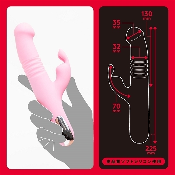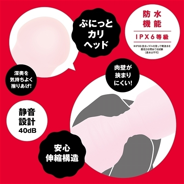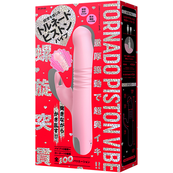 突きながらかき乱す《螺旋突貫》による究極の絶頂快感!トルネードとピストンが併せ持つ超強烈ギミックでグルングルンかき乱しズンズン深突き!ぷにっとカリヘッドが肉壁を気持ちよく擦りあげ!超強力重厚モーターで芯から震える重くて強烈な振動で奥イキ!!バイブ:10種類×ローター10種類の全100バリエーション♪ 肌ざわりなめらかな高品質ぷにっとソフトシリコン仕様。肉壁を挟み込む心配がない柔らかピストンギミックです。本体は充電式なのでエコに使用可能。本体:充電時間約190分、本体:最大連続稼働時間約70分(初期振動パターン未変更時)_IPX6等級_バイブ・ローター各10パターン振動_付属品:USBマグネット式充電ケーブル※IPX6:放水ノズルを使って噴流水を最低3分間あてる試験(浸水は不可となります)●カラー:ピンク |