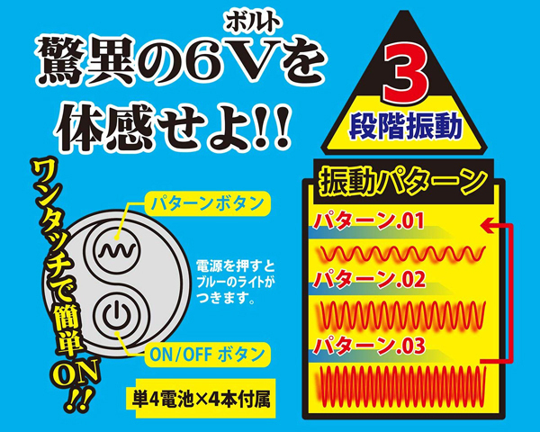 簡単な操作でパワフルな快感!6ボルトの振動を手軽に楽しめるシンプルなシングルローターです。振動にスポットを当てたシンプル構造のシングルローターで、振動パターンは強弱3パターンを内蔵!ボタンもワンタッチの簡単操作でシンプルに楽しめるピンクカラーのローターとなっております♪ |