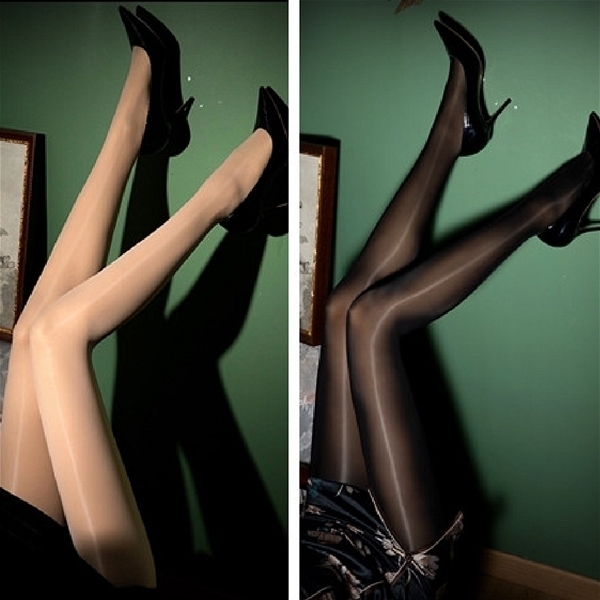 【1650円★数量限定】光沢オールスルー ストッキング 穴開き (ブラック・ベージュ各1枚) 2枚セット<お一人様1点限り>