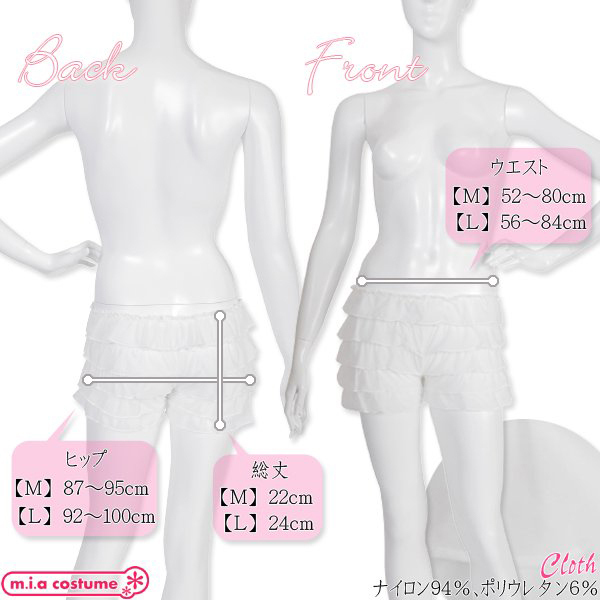 ◆商品仕様:Lサイズ W56〜84cm・H92〜100cm・総丈24cm セット内容:ペチコートパンツ単品(ウエストゴム) 素材:ナイロン94%、ポリウレタン6% モデル身長162cm