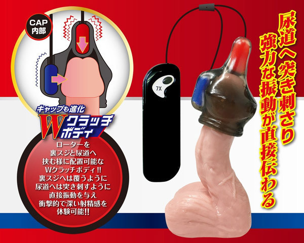 かつてない衝撃!強さの異なるダブルローターを搭載した亀頭オナグッズ「ブラックロック Wインパクト」。異なる振動を尿道と裏スジの2ヶ所同時に当てる事で、亀頭への刺激に立体感が加わり深みのある快感に!ローターの振動パターンは連動して変化する7段階振動を搭載。亀頭キャップ自体もローターを裏スジと尿道へ挟むように配置できるWクラッチボディへと進化!裏スジへは覆うように、尿道へは突き刺すように直接振動を与えます。ハンズフリーで楽しめる大人気『ブラックロック』シリーズの亀頭責めグッズ!各ローターの装着位置を変えることで違った刺激を楽しめます。 |