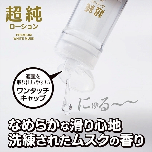 中庸なタイプの粘度で滑らかな肌触りと滑りが特徴の「超純ローション ホワイトムスク」です。甘く官能的な香りで多くの女性からの支持も抜群!ホワイトムスクの香りが漂いつものプレイをより印象的なものにしてくれます♪安心の国内工場製造で品質も申し分なし!安心してあらゆるシチュエーションやプレイにお使いいただけます♪ローション選びに迷ったら、超純!#ぜひ、この潤いをお楽しみください。 |