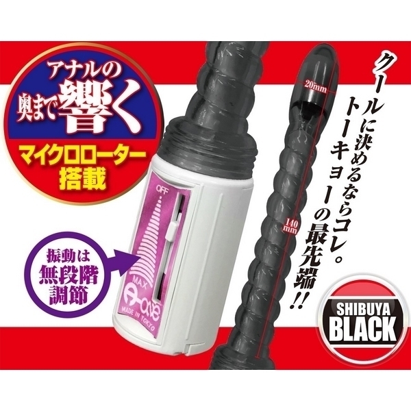 アナルトーキョーからシリアナ快感を世界へ!奥まで響くマイクロローターを搭載したスティック型アナルバイブ。●渋谷ブラックカラータイプ●フレキシブルな柔軟ボディ●ポコポコ刺激のスクリュー型●挿入部約14cm、最大径約2cm●先端にマイクロローター搭載●奥まで届くパワフルな振動●振動調整は無段階スライド式●安心安全な日本製グッズ。ぷっくりヘッドにパワフルモーターを搭載した、スリムなスティックフォルムの電動アナルグッズです。 |