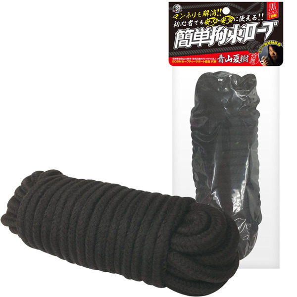 初心者でも簡単♪ソフトSMにぴったりな綿素材を使用した緊縛ロープ「簡単拘束ロープ 黒」。●身体に負担をかけない綿素材●柔らかく適度にコシのある仕上がり●様々なプレイを実現する長さ10m●使用後は洗濯も出来て衛生的●緊縛師「青山夏樹」推薦。緊縛プレイでマンネリ解消!緊縛事故防止の教育・啓発を行うNPO法人BDSMセーフティーサポート協会代表の女緊縛師「青山夏樹」推薦!安心・安全に使用できるSMグッズです。※本商品は吊りへの使用は出来ません。 |