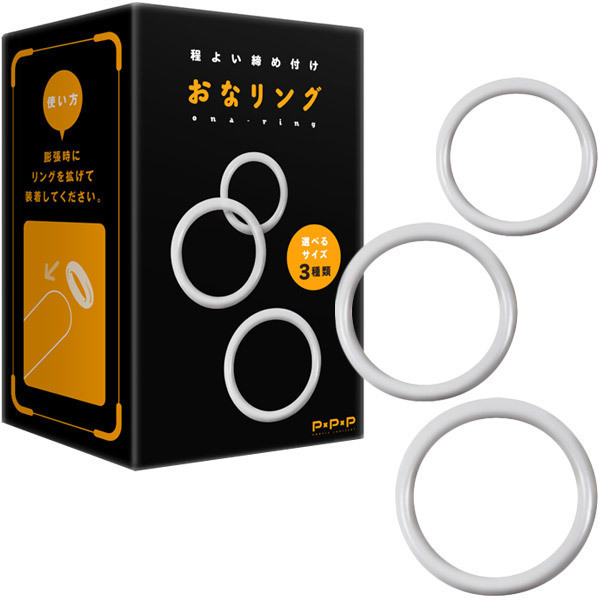 大中小の各サイズが勢揃い!高品質シリコンを使用した、シンプルデザインのコックリング3個セット。どなたでもフィットする伸縮性の高い柔らか素材を採用!刺激を求めるパートナーとのスパイスとしてはもちろん、ホールオオナニーにも最適!しっかり締めつけながら、ロングプレイをサポートしてくれるコックリングセットです。 |