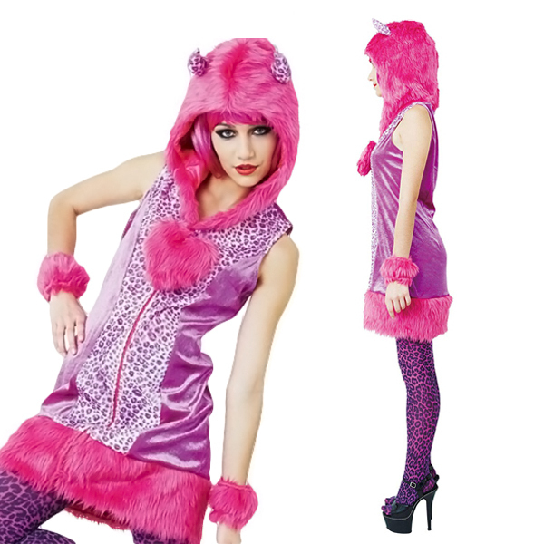 人とかぶらない個性的なハロウィン仮装をお探しの方に!フューシャピンクのビビッドなカラーが注目度抜群な、可愛いヒョウ柄の悪魔コスプレ。獣感のあるもこもこファーのフード付ワンピースとファーブレスレットで、全身をド派手にコーディネート!近未来から来たようなデザインが可愛いデビル仮装です。※水洗い不可、塩素系漂白剤、アイロン、ドライクリーニング不可、色落ちの可能性があります。※こちらの商品は在庫の状況によりお届けまでに4日〜7日程度かかる場合がございます。 |